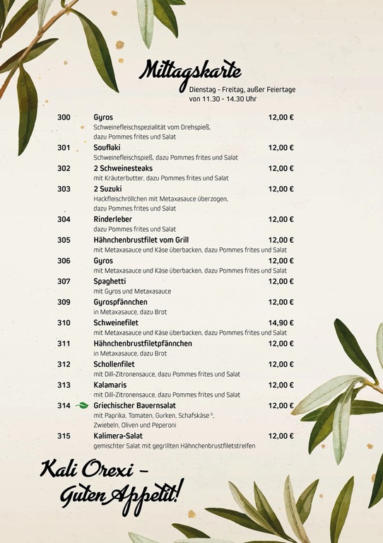 Griechische Gastlichkeit im Restaurant Kalimera