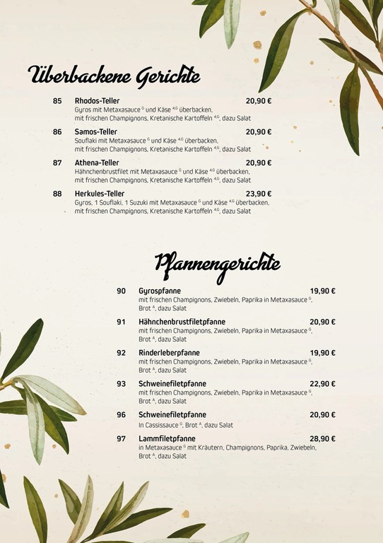 Griechenland ist nicht nur die Wiege der abendländischen Kultur, Griechenland ist auch ein lukullisches Erlebnis. Überzeugen Sie sich, studieren Sie in Muße unsere Speisekarte. Essen ist eine sehr schöne Sache, dass man sich Zeit dafür lassen sollte. Am besten schmeckt es in froher Runde mit lieben Menschen. Wie wahr das ist, beweisen unsere griechischen Tischsitten. Hier wird nämlich jedes Mahl zum Fest, voller Unterhaltung, Spaß und Frohsinn.