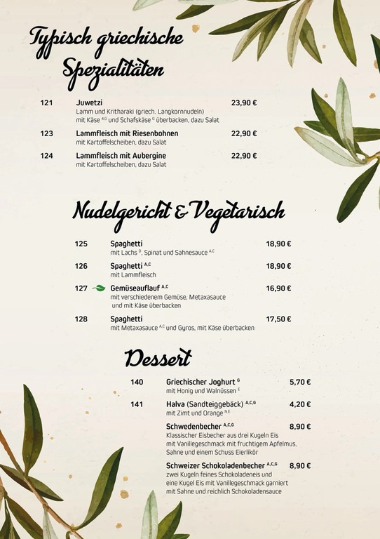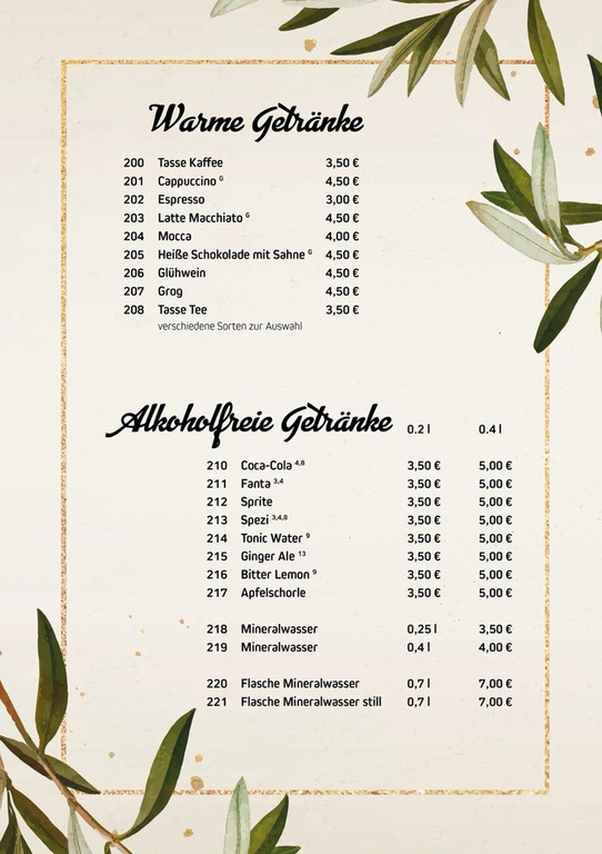 Speise- und Getränkekarte